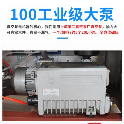該機(jī)采用國內(nèi)知名品牌上海第二真空泵產(chǎn)生產(chǎn)的工業(yè)級大泵,引起德國普旭技術(shù),部分核心部件為全進(jìn)口,關(guān)鍵部位材質(zhì)含有微量金屬元素,真空泵壽命更持久,其中真空油為專業(yè)配方,耐高溫,比傳統(tǒng)真空泵油更耐用。抽氣速率為100m3/H,