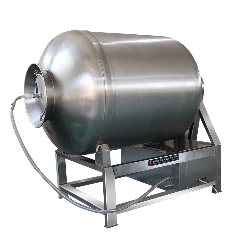 真空滾揉機(jī)筒體采用SUS304不銹鋼材質(zhì)制作,圓筒狀設(shè)計(jì)使?jié)L揉空間加大,運(yùn)行噪音小,三片漿葉圓弧形設(shè)計(jì),使腌料與原料肉分布均勻,避免了對(duì)原料肉表面的傷害。防水電腦版控制柜與時(shí)間繼電器控制結(jié)合,方便客戶根據(jù)自己的生產(chǎn)工藝要求調(diào)節(jié)滾揉時(shí)間、靜汁時(shí)間。整機(jī)外觀采用表面鏡面拋光處理,外觀整潔、大方。